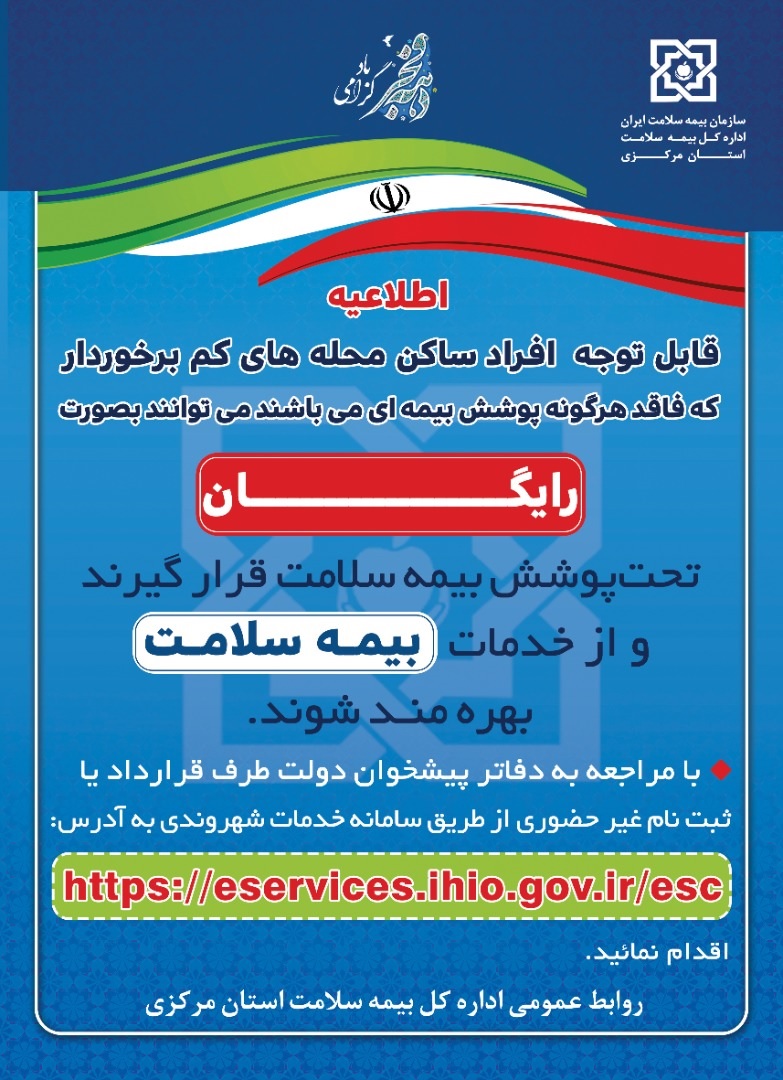 طرح بیمه نمودن افراد فاقد پوشش بیمه ای در محله های کم برخوردار ۰۳ اسفند ۱۴۰۰ | ۱۲:۴۸ کد : ۲۴۱۷۷ اطلاعیه ارسال به دیگران نام شما ایمیل شما ایمیل دریافتکننده ارسال انصراف تعداد بازدید:۲۶۴۰۱