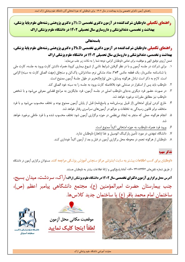 اطلاعیه راهنمای داوطلبان شرکت کننده در آزمون دکتری تخصصی (Ph.D) و دکتری پژوهشی رشته های علوم پایه پزشکی، بهداشت تخصصی و دندانپزشکی سال تحصیلی ۱۴۰۳-۱۴۰۲