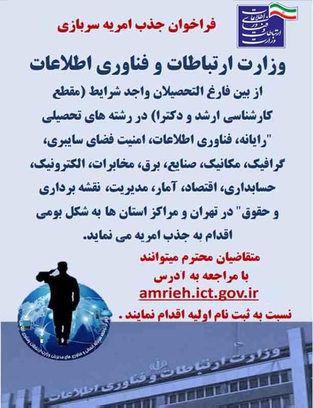 جذب نیروی امریه سربازی در وزارت ارتباطات و فناوری اطلاعات