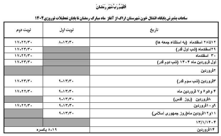 اعلام ساعات پذیرش اهدا کنندگان محترم در پایگاه انتقال خون شهرستان در ماه مبارک رمضان ۲۸ اسفند ۱۴۰۳ | ۱۳:۰۸ کد : ۵۰۲۶۹ اطلاعیه ارسال به دیگران نام شما ایمیل شما ایمیل دریافتکننده ارسال انصراف تعداد بازدید:۸۱۲۵ اعلام ساعات پذیرش اهدا کنندگان محترم در پایگاه انتقال خون شهرستان در ماه مبارک رمضان