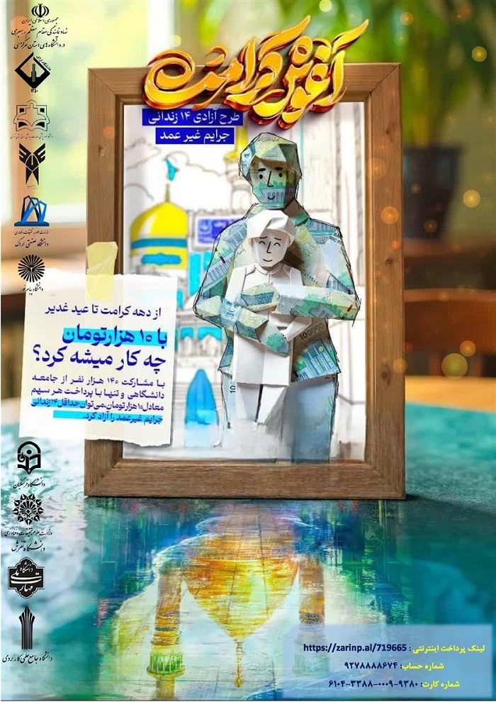 به اطلاع می رساند؛ نهاد نمایندگی مقام معظم رهبری در دانشگاه های استان مرکزی، پویش " آغوش کرامت " را با هدف ترویج فرهنگ مسئولیت پذیری اجتماعی در میان دانشگاهیان و با نیت آزادی ۱۴ نفر از زندانیان جرایم غیر عمد طراحی و راه اندازی نموده است.