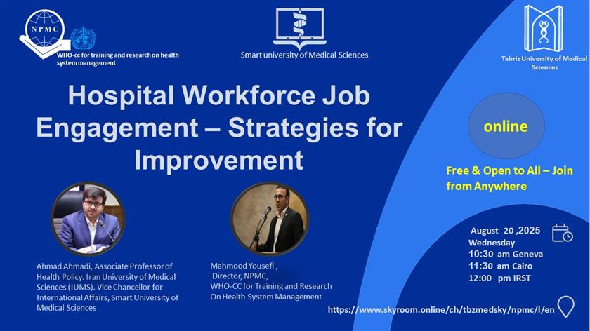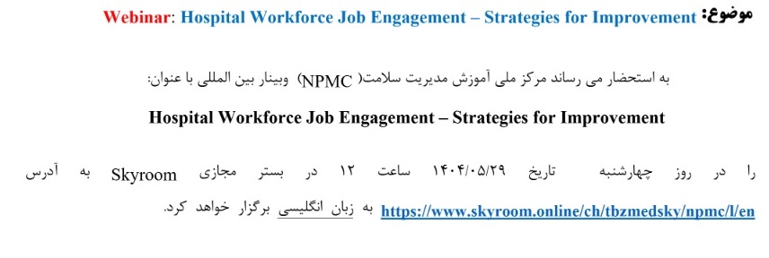 وبینار آموزشی بین المللی Hospital Workforce Job Engagement – Strategies for Improvement ۲۹ مرداد ۱۴۰۴ | ۱۰:۰۱ کد : ۵۳۹۲۵ اطلاعیه ارسال به دیگران نام شما ایمیل شما ایمیل دریافتکننده ارسال انصراف تعداد بازدید:۳۰۳۳ وبینار آموزشی بین المللی Hospital Workforce Job Engagement – Strategies for Improvement