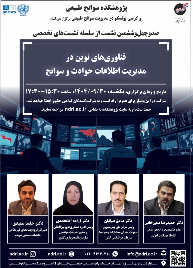 نشست فن آوری نوین در مدیریت اطلاعات حوادث وسوانح ۳۰ آذر ۱۴۰۴ | ۱۲:۰۴ کد : ۵۷۱۴۹ اطلاعیه ارسال به دیگران نام شما ایمیل شما ایمیل دریافتکننده ارسال انصراف تعداد بازدید:۱۹۳۲ دعوتنامه نشست فن آوری نوین در مدیریت اطلاعات حوادث وسوانح